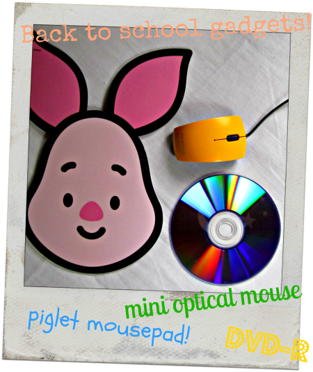 | Piglet Mouse Pad {35.00 Php}, mini optical mouse{150.00 Php}, DVD-R{10.00 Php} all from CDR- King |